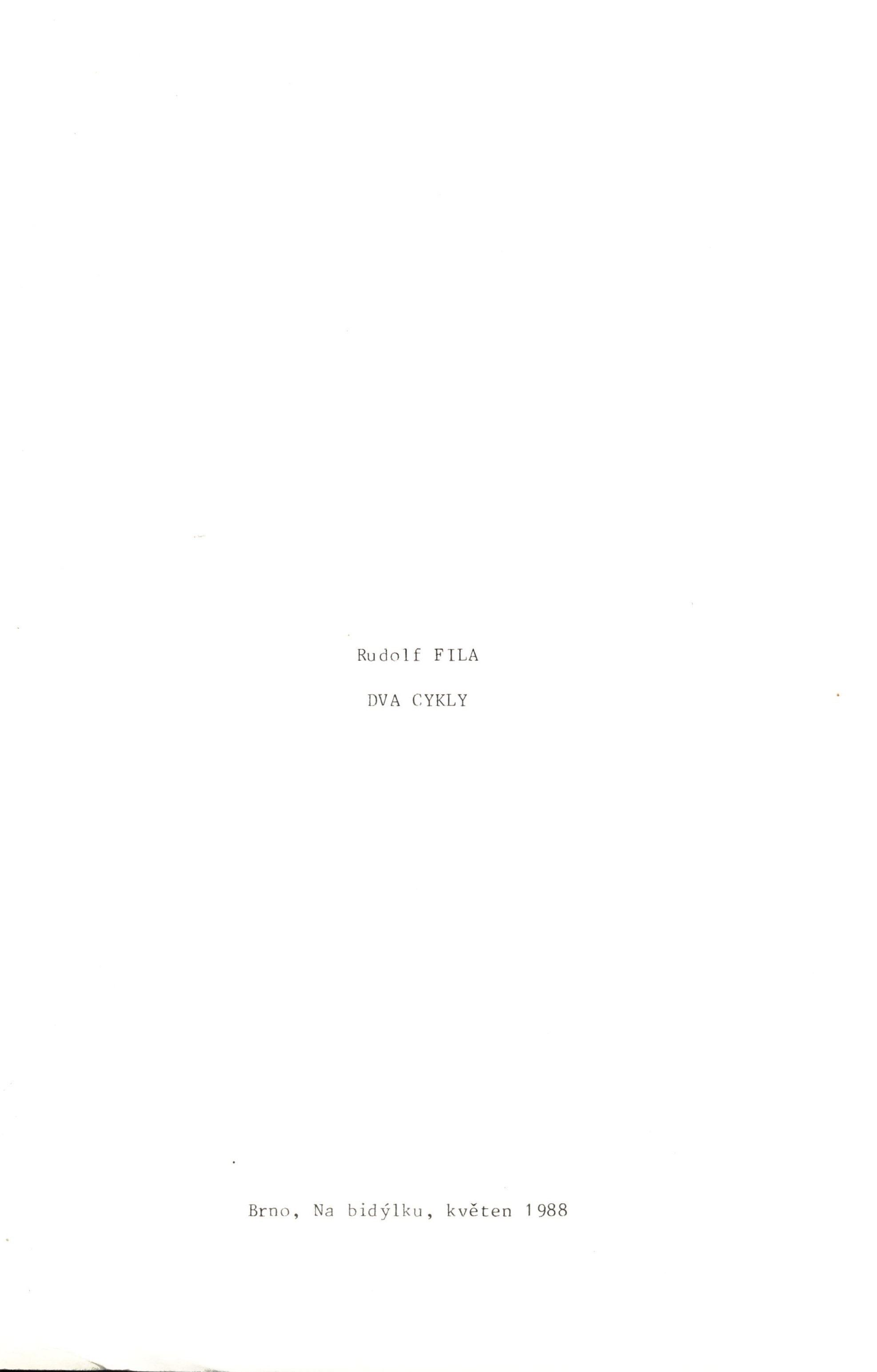 Katalog k výstavě Rudolfa Fily pořádané v Brně v galerii Na bidýlku v roce 1988.