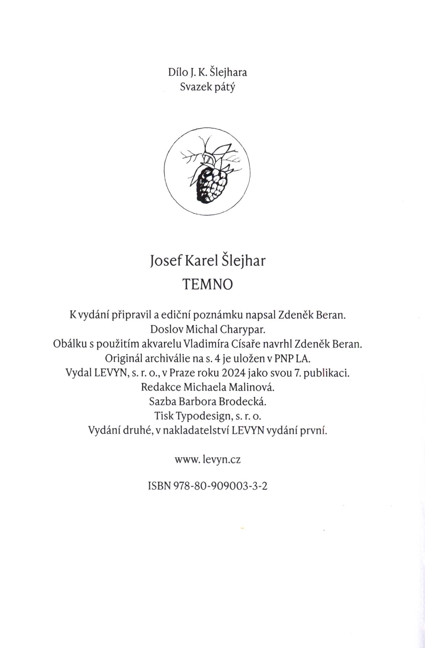 Dílo, J.K. Šlejhar (Levyn)Country Czech Republic Language Czech Note Na hřbetu knihy uvedeno číslo 5. - Kartonová vazba s přebalem. - Přebal zdoben reprodukcí akvarelu Vladimíra Císaře. - Na záložkách přebalu anotace a seznam edičních titulů. - Nakladatelský seznam. - Doslov. - Ediční poznámka. - Vysvětlivky