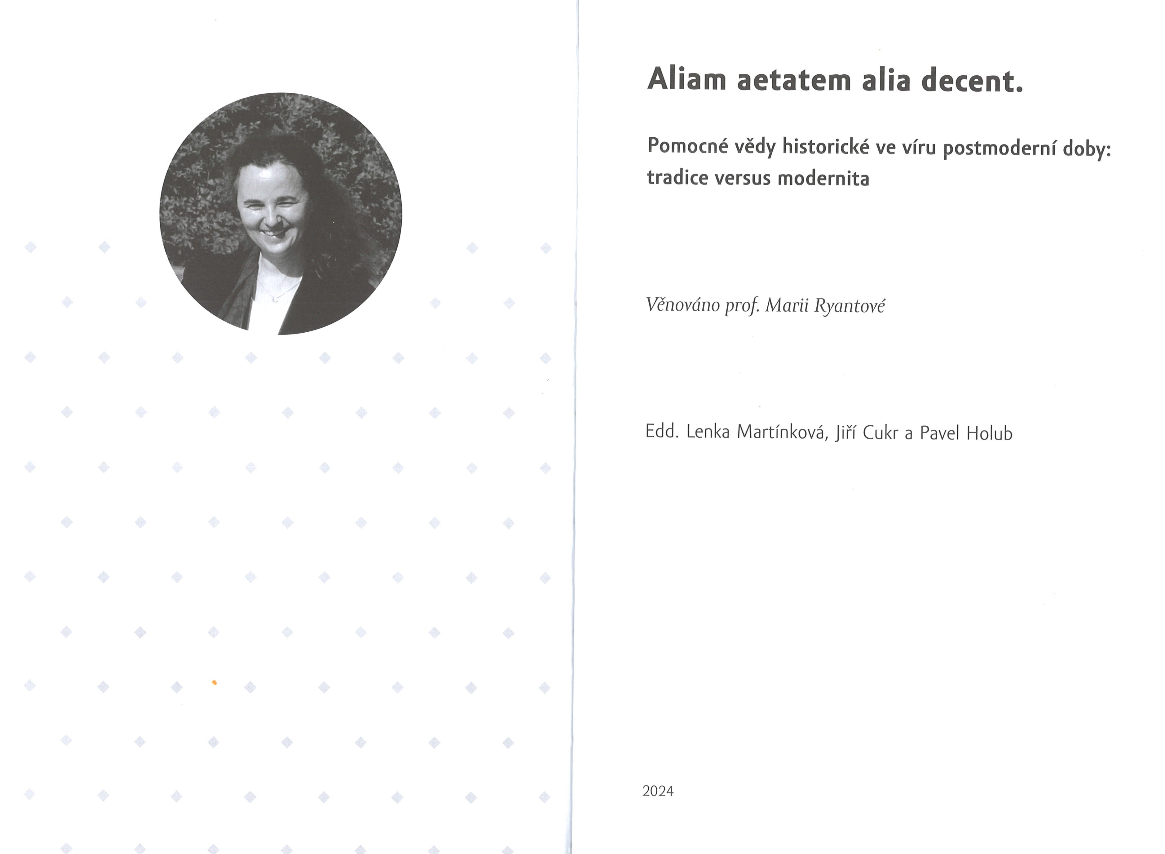 Title information Aliam aetatem alia decent : pomocné vědy historické ve víru postmoderní doby : tradice versus modernita / edd. Lenka Martínková, Jiří Cukr a Pavel Holub Další autoři Martínková, Lenka, 1969- (Editor) Cukr, Jiří, 1986- (Editor) Holub, Pavel, 1984- (Editor) Ryantová, Marie, 1964- (Honoree) Solperová, Barbora, 1975- (Book designer) (Compositor) Corporation Nakladatelství Jihočeské univerzity v Českých Budějovicích (Publisher) INPRESS (tiskárna) (Printer) Publication České Budějovice : Nakladatelství Jihočeské univerzity v Českých Budějovicích, 2024 Manufacture INPRESS a.s. Scope 415 stran, viii stran obrazových příloh : ilustrace (některé barevné), portréty, faksimile, erby ; 25 cm Subject headings archives - Czechia * written sources - Czechia * auxiliary sciences of history Keywords historie * pomocné vědy historické * archivní dokumenty * archivní fondy * archivní prameny * písemné prameny * knihovny * státní správa * paměti * kolektivní monografie * r. 2024 Copy cnt. 1, currently available 0 Document kind monografie Call number LITc 0871