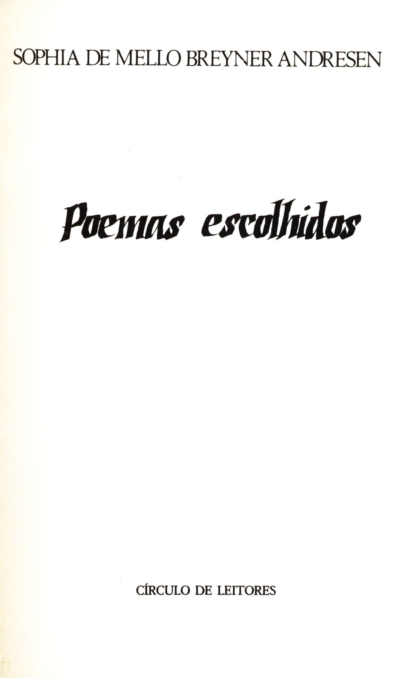 Title information Poemas escolhidos / Sophia de Mello Breyner Andresen Personal name Andresen, Sofia de Melo Breyner, 1919-2004 (Author) Další autoři Círculo de Leitores (Publisher) Printer Portuguesa, Lda. (Printer) Publication Lisabon : Círculo de Leitores, 1981 Manufacture Printer Portuguesa, Lda., Scope 164 stran ; 21 cm ISBN (Vázáno) Country Portugal Language Portuguese Note Zdobená obálka. - Typografický titulní list. - Obsah.