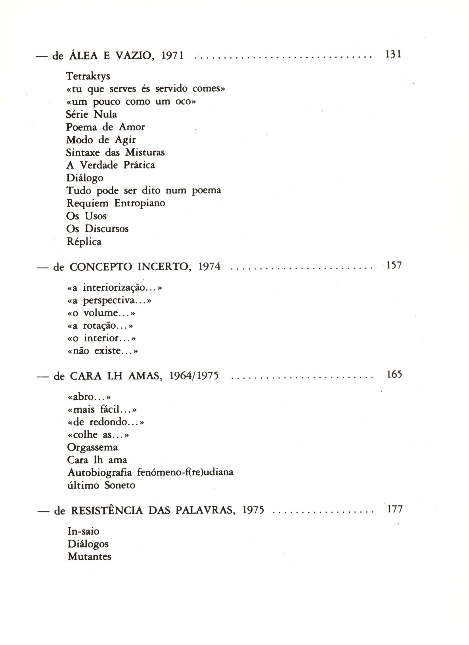 Title information Autologia : Poemas escolhidos 1951–1982 / E. M. de Melo e Castro ; prefácio de Fernando Segolin Personal name de Melo e Castro, E. M. (Author) Další autoři Segolin, Fernando (Author of introduction) Corporation Moraes Editores (Publisher) (Printer) Publication Lisabon : Moraes Editores, 1983 Scope 236 stran: čb. ilustrace ; 20 cm ISBN (Brožováno) Edition Círculo de poesia