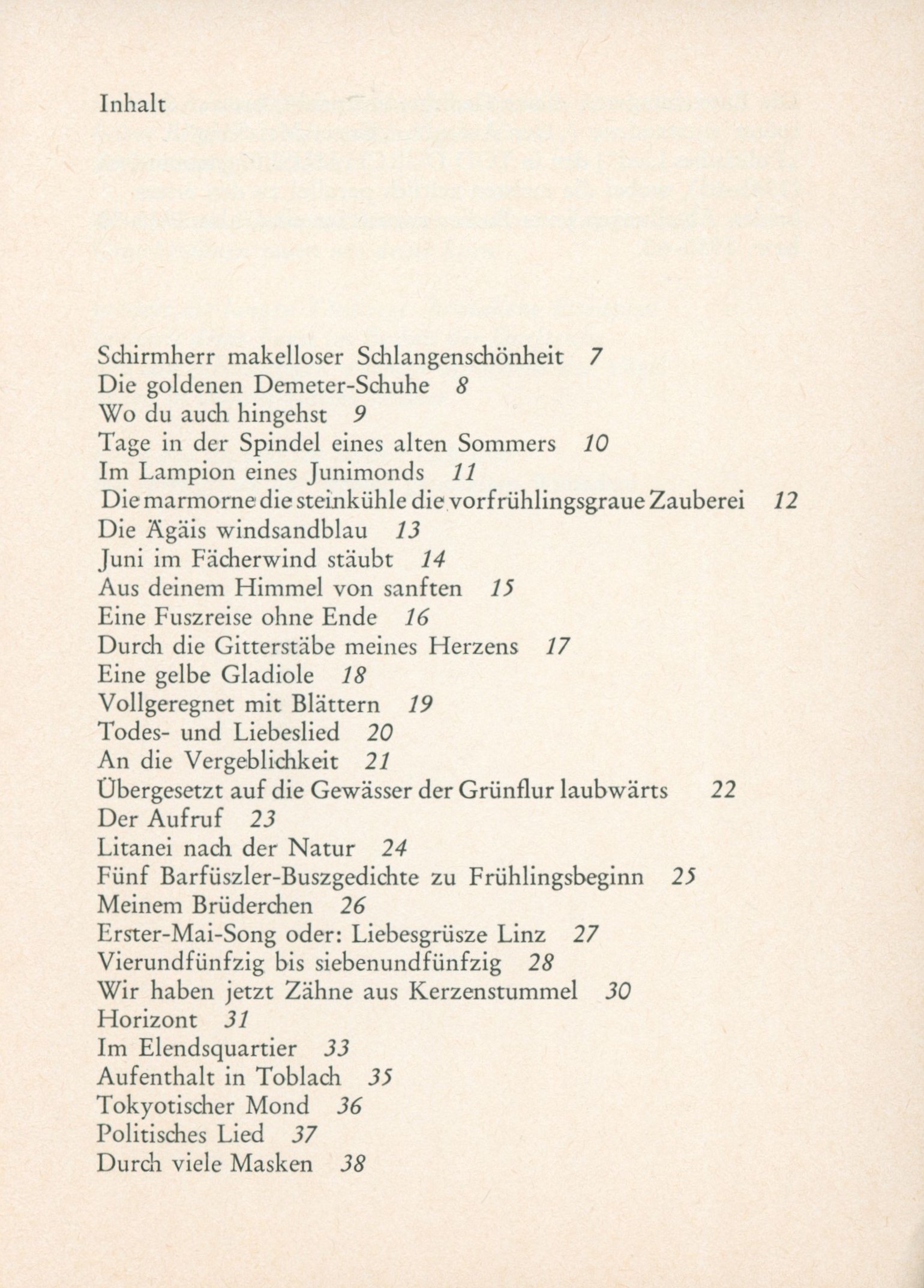AnnotationTato básnická sbírka doplňuje autorčiny předchozí publikace jejích básnických děl; svazek obsahuje básně psané od roku 1945 a umožňuje nám tak – jakoby ve zrychleném záběru – rozpoznat vývoj a kontinuitu v poezii Friederike Mayröcker.