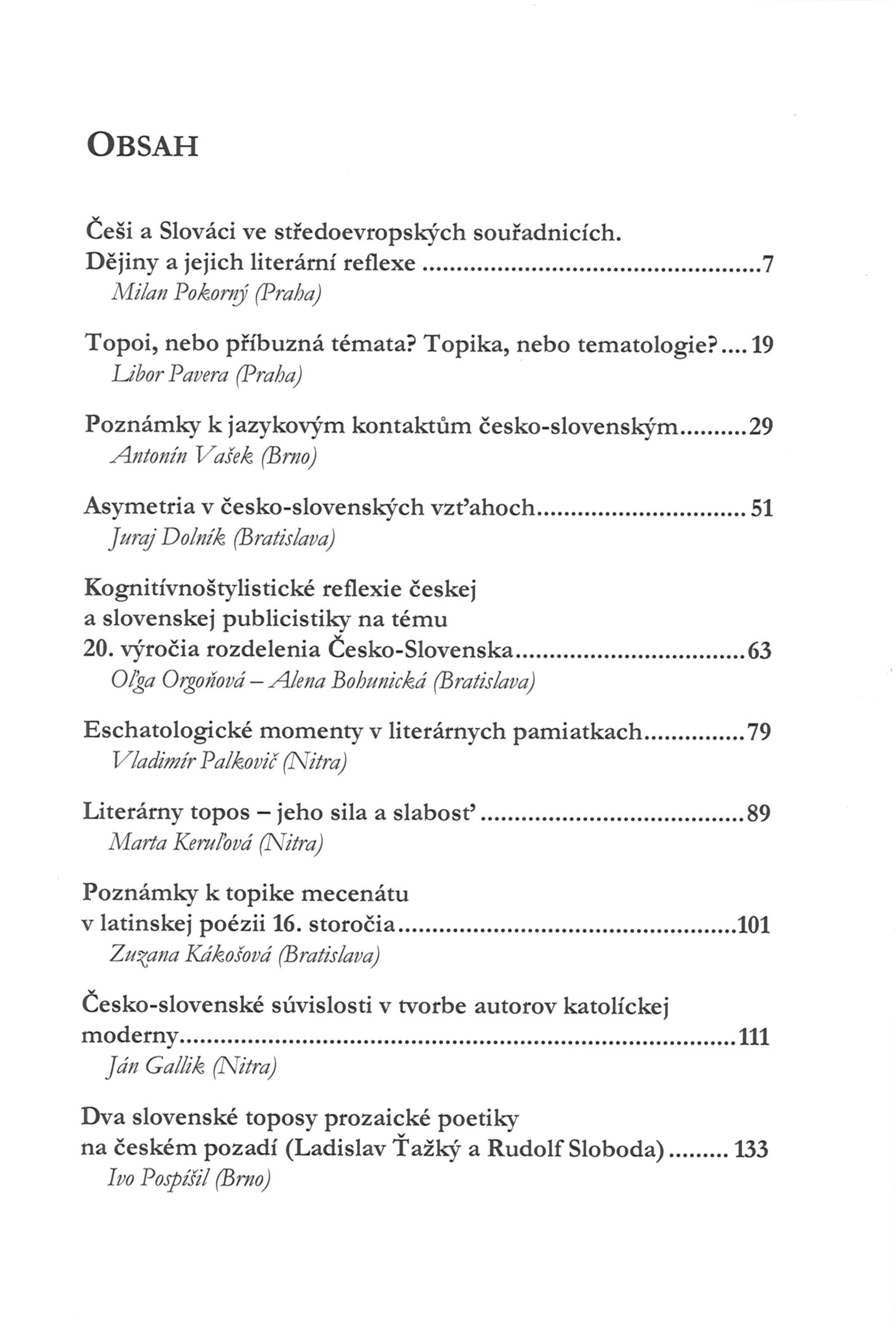 Myšlenkové toposy literatury v česko-slovenských souvislostech